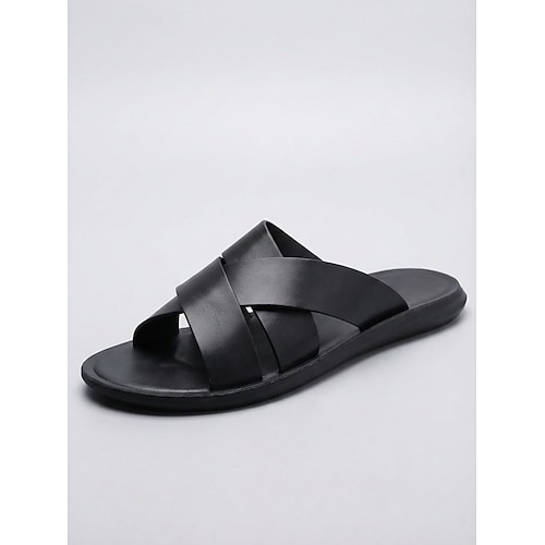 sandali casual estivi da uomo: tomaia in similpelle, design a punta aperta, comodi slip-on, perfetti per il tempo libero quotidiano, i viaggi e le gite in spiaggia