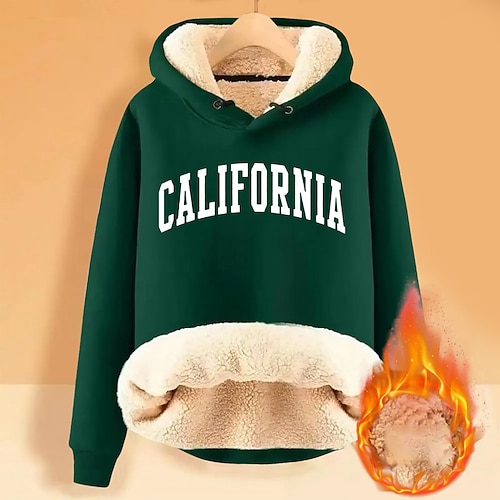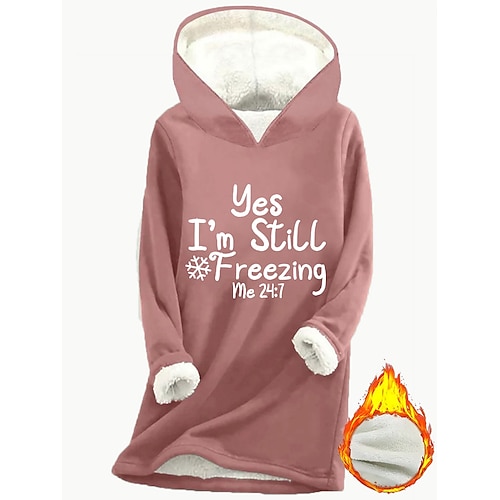 Per donna Felpa con cappuccio Grafico Lettera Caldo Casual Pile Sherpa Manica Lunga Con Cappuccio Top lunghi Streetwear Abbigliamento Quotidiano Casuale Stampato Rosa scuro Blu Grigio Autunno Inverno