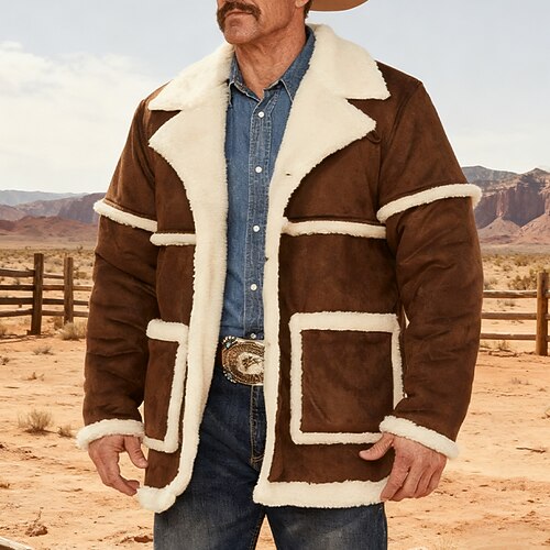 Per uomo Giacca in finta pelle scamosciata Giacca Invernale Giacca Sherpa Vacanza Quotidiano Calore Termico Tasca Pile Inverno Blocco di colori Moda Streetwear Bavero Regolare Cachi Caffè Giacca