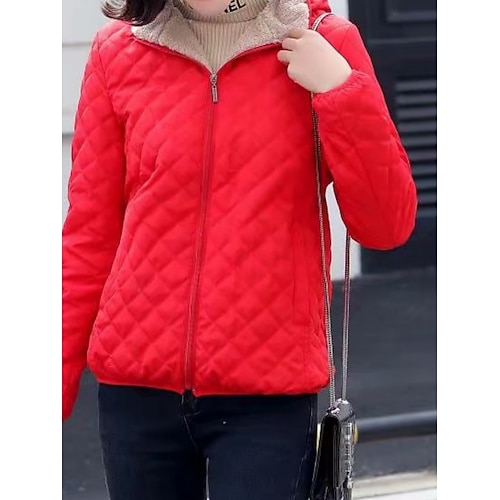 Per donna Cappotto Invernale Giacca Sherpa Confortevole Traspirante Cerniera Tasca Casual Semplice Vacanza Streetwear Casuale Abbigliamento quotidiano Cerniera Corto Con Cappuccio Vestibilità regolare
