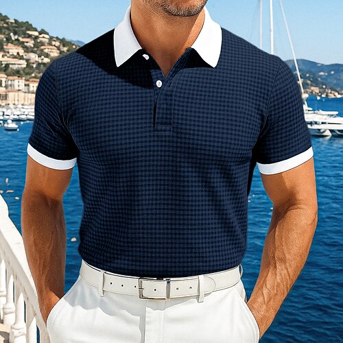 Per uomo Testurizzato Maglia da golf Affari Casuale Classico Manica Corta Moda Moderno Tinta unica Bottoni Estate Primavera Blu Giallo Blu marino Cachi Testurizzato