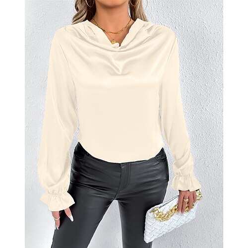 Per donna Camicia Elegant Elegante Raso/Satin Tinta unica Elegante Casual Manica Lunga Scollo a Cascata Top Regolari Quotidiano Uscire Drappeggiato Nero Rosa Verde Albicocca Primavera Autunno