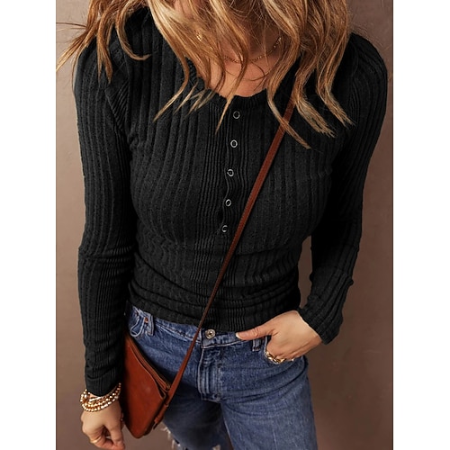 Per donna Blusa Tinta unica Elegante Casual Manica Lunga Girocollo Top Regolari Quotidiano Bottoni Nero Rosa Verde militare Cachi Grigio Primavera Autunno Inverno