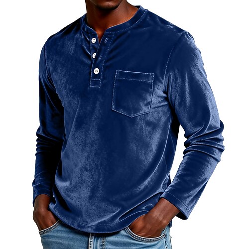 Per uomo Maglietta Manica Lunga Henley Autunno Inverno Primavera Autunno Tinta unica Vacanza Quotidiano Tradizionale / Vintage Bottoni All'aperto Casa Sport Outdoor Nero Vino Blu reale Maglietta