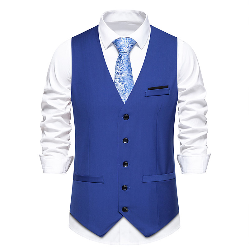 Men's Vest Gilet Daily Wear Vacation Going out Vintage Fashion Spring Fall Button Polyester Comfortable Plain Single Breasted V Neck Regular Fit Black Burgundy Dark Navy Sky Blue Vest