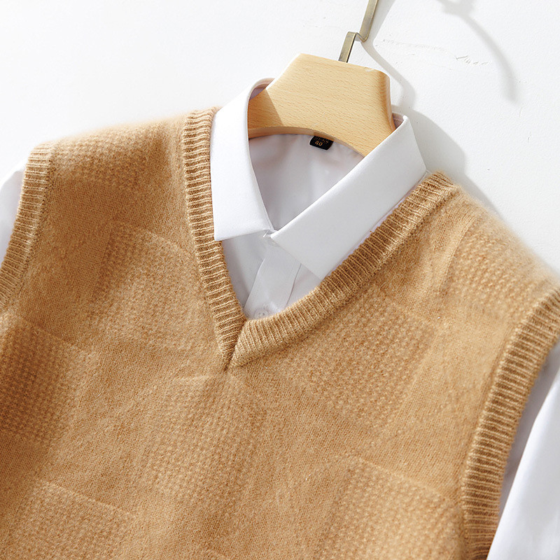 Men's Premium Pure Wool Cashmere V Neck Sweater Vest Classic Jacquard Knit Pullover Jumper Soft Warm Breathable