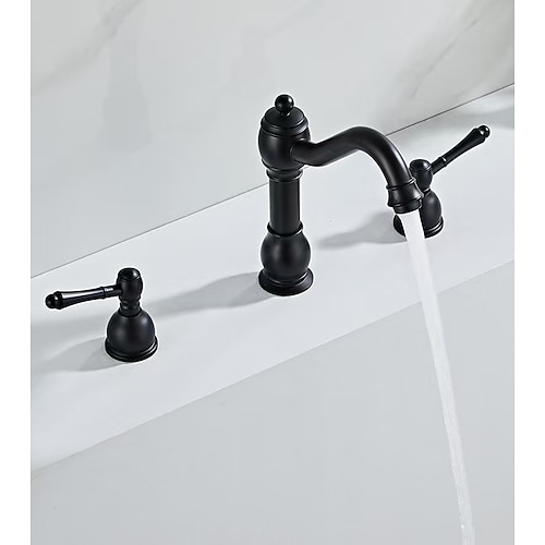 Rubinetto da bagno a tre fori da 8 pollici con 2 leve per lavabo, montaggio su piano con/senza piletta di scarico, tubi di alimentazione acqua calda e fredda, ottone anticato/nero