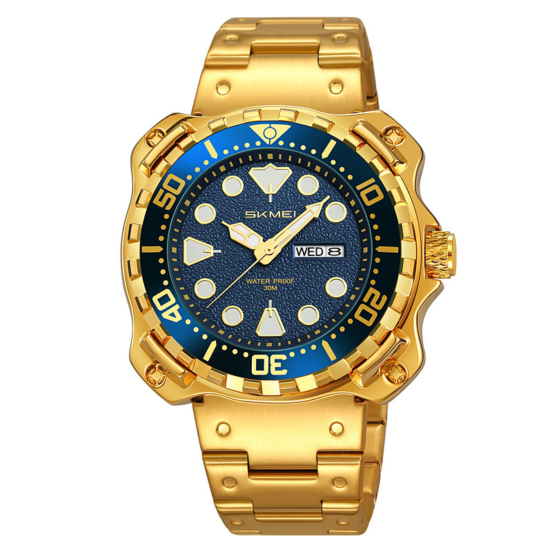 SKMEI Men Quartz Watch Minimalist Large Dial Fashion Business Luminous Calendar Waterproof Decoration Steel Watch