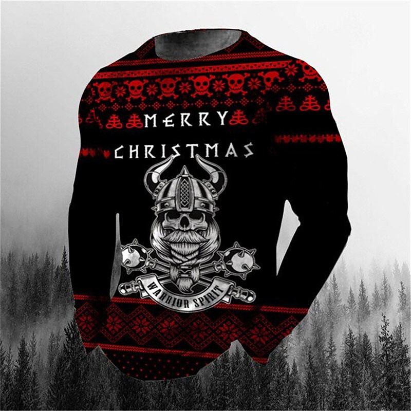 Men's Skull Graphic Prints T Shirt Long Sleeve Shirt Crew Neck Christmas Daily 3D Print Green / Red Black Red Print Clothing Apparel Streetwear Designer Basic Casual