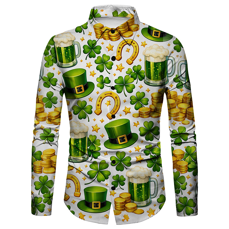 St.Patrick 2026 Retro Vintage 1970s Shirt Aloha Shirt Long Sleeves Hippie Fancy Dress Men's Masquerade 4th of July Party Festival Adults' Shirt