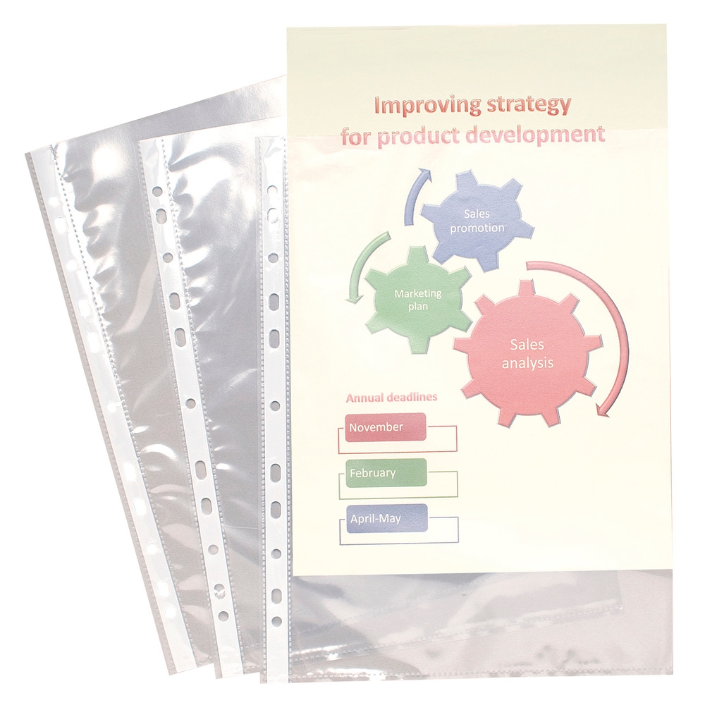 Exacompta Packung mit 10 Prospekthüllen glatt und gelocht aus PP 60µ, DIN A4