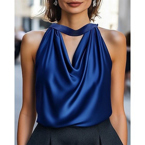 Per donna Elegant Elegante Raso/Satin Blusa Semplice Quotidiano Manica Lunga Collo Alto Top Regolari Blu Nero Bianco Albicocca Autunno