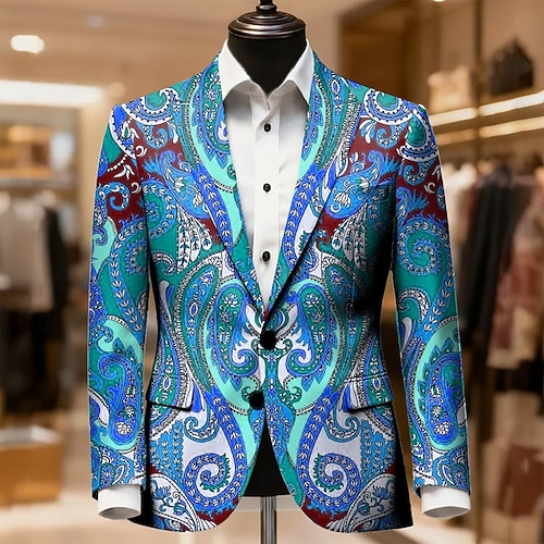 Herren Paisley-Muster Blazerjacke Mantel Bequem Atmungsaktiv Künstlerisch Lässig Lässig Täglich Festival 3D-Druck Knöpfe Herbst Winter Fallendes Revers Langarm Blau Rote Grün