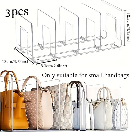 Organizzatore per armadio in acrilico da 3 pezzi - divisori trasparenti con 3 scomparti/4 griglie per l'organizzazione e l'esposizione del guardaroba, organizzatori per armadio e contenitori per