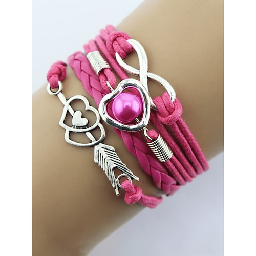 bracciali da donna in lega bohémien e similpelle, multicolori con ciondoli a forma di cuore e infinito, perfetti per San Valentino e per un abbigliamento casual