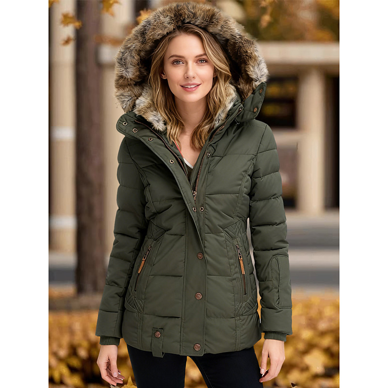 Women's Winter Coat Parka Warm Comfortable Fur Trim Zipper Pocket Casual Plain Outdoor Vacation Going out Weekend Long Hooded Regular Fit Long Sleeve Outerwear Black Pink Red Fall Winter