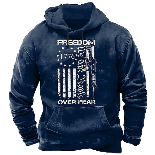 Herren Amerikanische US-Flagge 1776 Kapuzensweatshirt Pullover Mode Rundhalsausschnitt Outdoor Streetwear Schwarz Blau Kordelzug 3D Herbst Winter Designer
