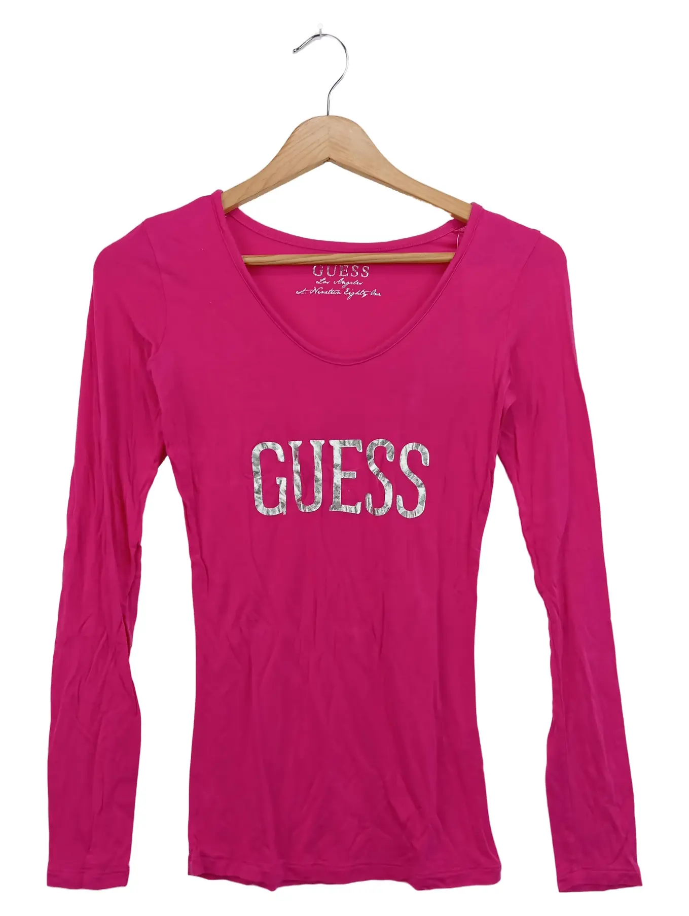 GUESS Langarmshirt Damen XS Pink Logoprint Casual Look