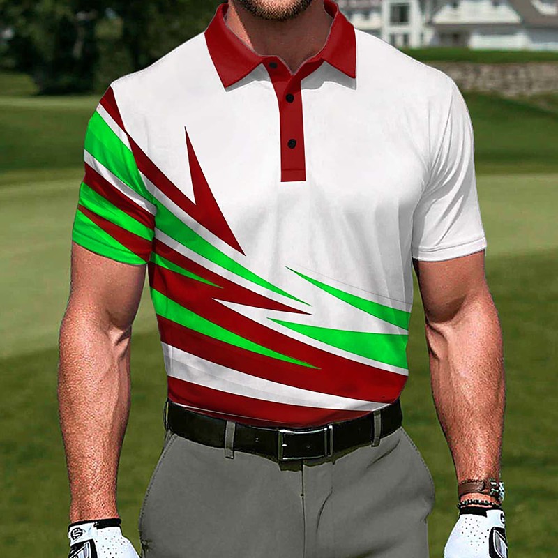 Men's Abstract Golf Sports Polo Shirts Short Sleeve Polo Shirts Collared Shirts Casual Athleisure Buttons Spring Summer Blue Red Purple