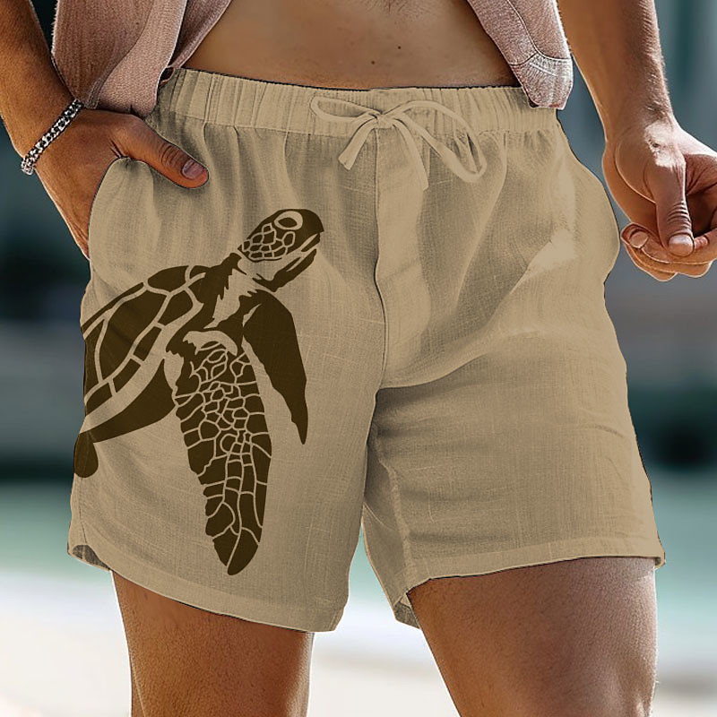 Turtle Printed Men's Graphic Cotton Linen Shorts Summer Hawaiian Shorts Beach Shorts Drawstring Elastic Waist Breathable Soft Short Casual Daily Holiday Streetwear Clothing