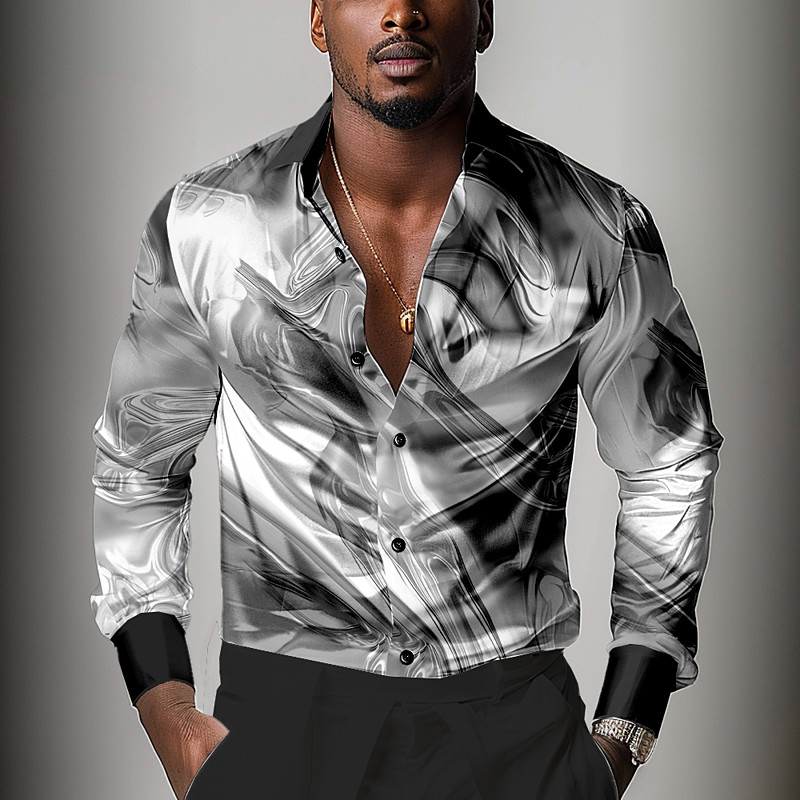 Men's Satin Shirt Button Up Shirt Printed Shirts Formal Daily Black Blue Long Sleeve Turndown Summer Spring Clothing Apparel Buttons