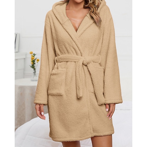 Per donna Pigiama Accappatoio Flanella Moda Casual Colore Puro Pizzo Vacanza Casa Da letto Manica Lunga Felpa con Cappuccio Rosa Cachi Autunno Inverno Vestibilità su misura