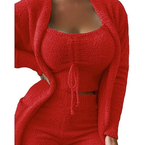 Per donna Pigiama Abbigliamento da Casa Set Pigiama Caldo Moda Casual Colore Puro Elastico in vita Pantalone Vacanza Casa Manica Lunga Girocollo Nero Bianco Rosa Rosso Cammello Autunno Inverno