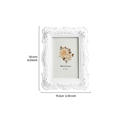 1 cornice per foto in rilievo tridimensionale in stile europeo con rosa bianca, una calda decorazione per la scrivania della casa, un ornamento per la cornice per foto, adatta per la camera da letto,