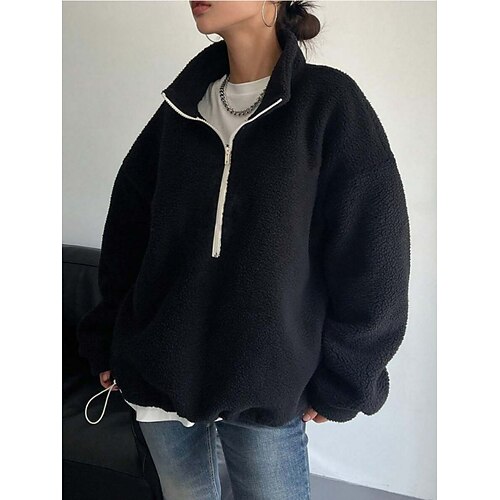 Per donna Giacche strutturate Felpa Pullover Semplice Caldo Attivo Pagliaccetto Manica Lunga Mezza zip Top Regolari Casa Streetwear Abbigliamento Quotidiano Cerniera Nero Rosa Verde Beige Primavera