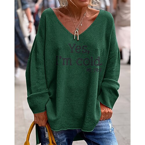 Per donna Felpa Maglione Elegante Moda Streetwear Tinta unica Lettera Collo a U Lavorato a maglia Stampato Manica Lunga Top Regolari Maglia All'aperto Casa Quotidiano Rosa Zenzero Autunno Inverno