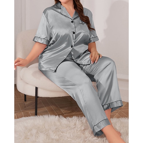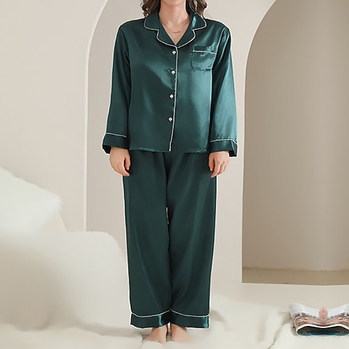 Per donna Pigiama Casual Morbido Raso Colore Puro Tasca Bottoni Pantalone Quotidiano Casa Da letto Manica Corta Colletto a Camicia Nero Champagne Rosa Rosso Blu marino Estate Vestibilità comoda