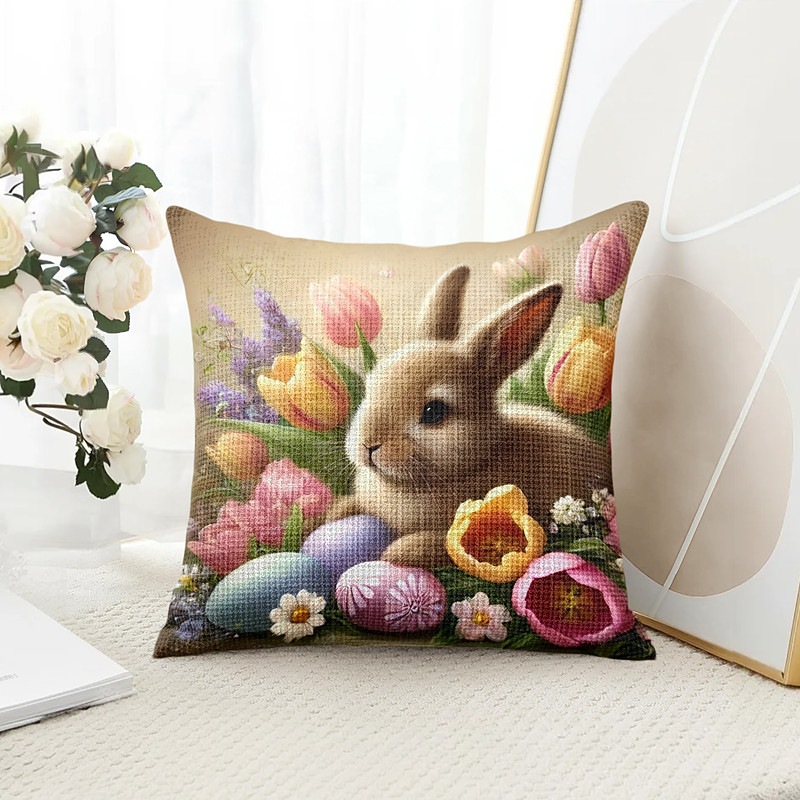 Easter Decorative Toss Pillows Cover 1PC Bunny Eggs Soft Square Couch Cushion Case Pillowcase for Bedroom Livingroom Sofa Chair