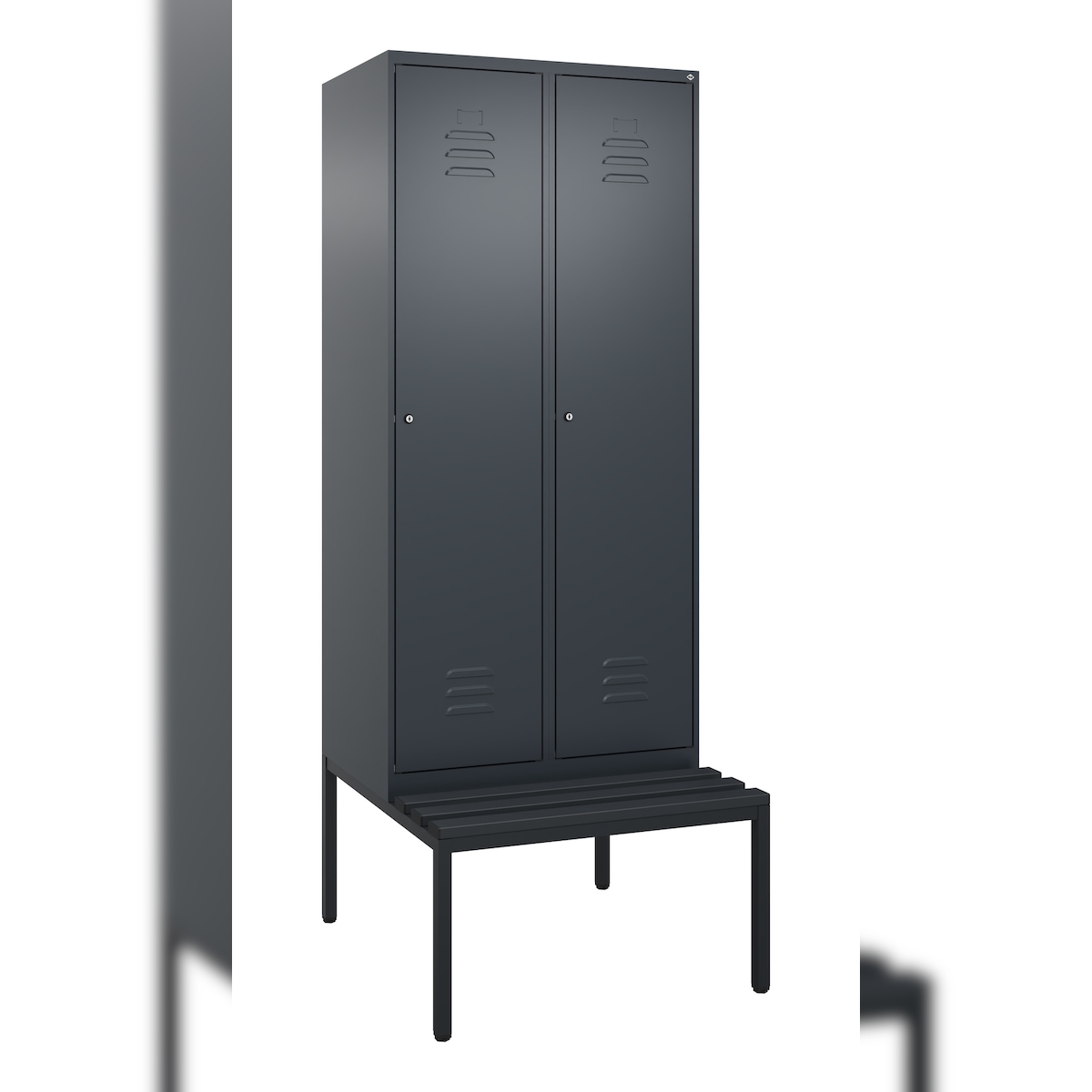 C+P Spind Classic PLUS, Kunststoff untergebaute Sitzbank, 2 Abteile, HxBxT 212x80x82cm, Zylinderschloss, Anthrazit von PROREGAL