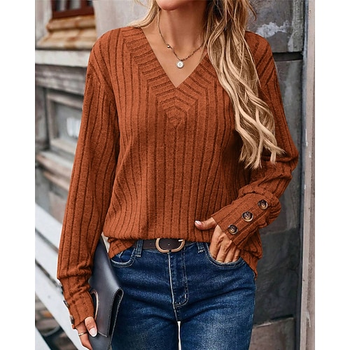 Capodanno Per donna Top con paillettes Elegante Festa Manica Lunga Scollo a V Top Regolari Nero Vino Primavera Autunno Inverno