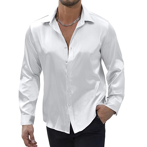 Per uomo Camicia Camicia in raso Camicia casual Camicia con Bottoni Camicie sbottonate Semplice Formale Quotidiano Nero Bianco Vino Blu reale Manica Lunga Bavero Primavera Autunno Tutte le stagioni