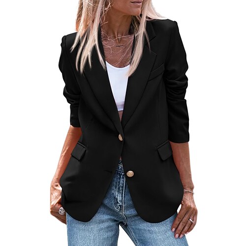 Per donna Blazer Confortevole Tasca Bottoni Attivo Semplice All'aperto Vacanza Uscire Weekend Regolare Collo ripiegato Vestibilità regolare Manica Lunga Capispalla Nero Bianco Vino Autunno Inverno