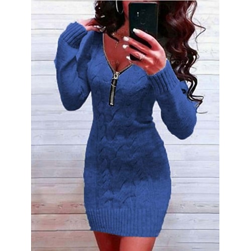 Per donna Mini Abito Abito in maglia Tubino Abito a Portafoglio Festa Casual Feste Quotidiano Uscire Semplice Manica Lunga Dolcevita Nero Vino Blu Verde Primavera Autunno Inverno