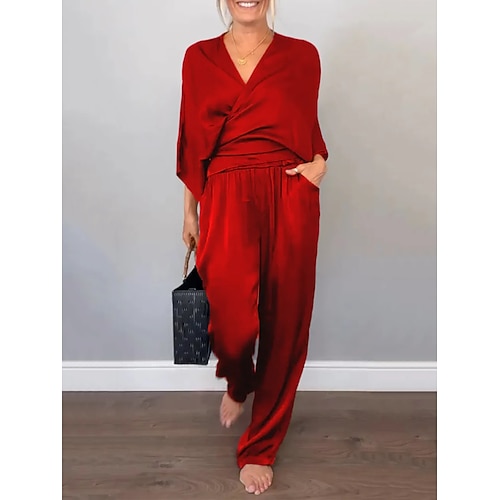 Per donna Camicia Set di Pantaloni Bolero Top Manica Lunga Colletto a Camicia Tinta unica Moda Streetwear Casuale Quotidiano All'aperto Nero Bianco Verde militare Estate Vestibilità comoda