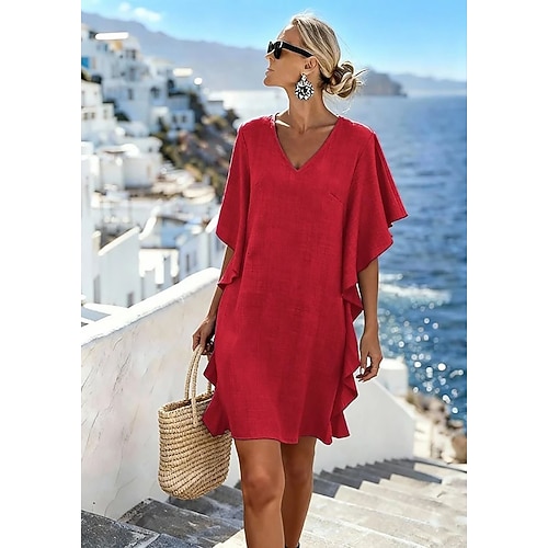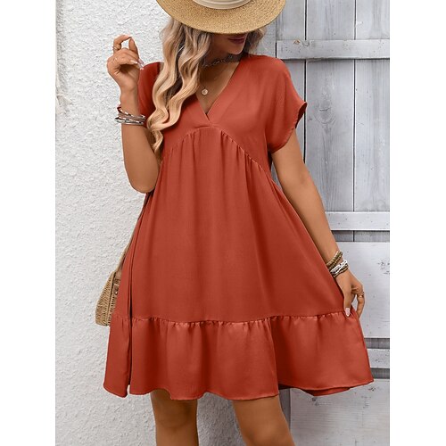 Per donna Mini Abito Vestito Estivo Vestito Casual Abito con balze Elegante Moda Moderno All'aperto Vacanza Uscire Vestibilità comoda Semplice Manica Corta Scollo a V Nero Rosa Rosso Blu marino