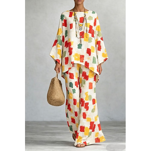 Per donna Set di Pantaloni Manica Lunga Girocollo Grafico Geometrico Stampato Moda Streetwear Casuale Quotidiano All'aperto Bianco Giallo Verde Estate Vestibilità comoda