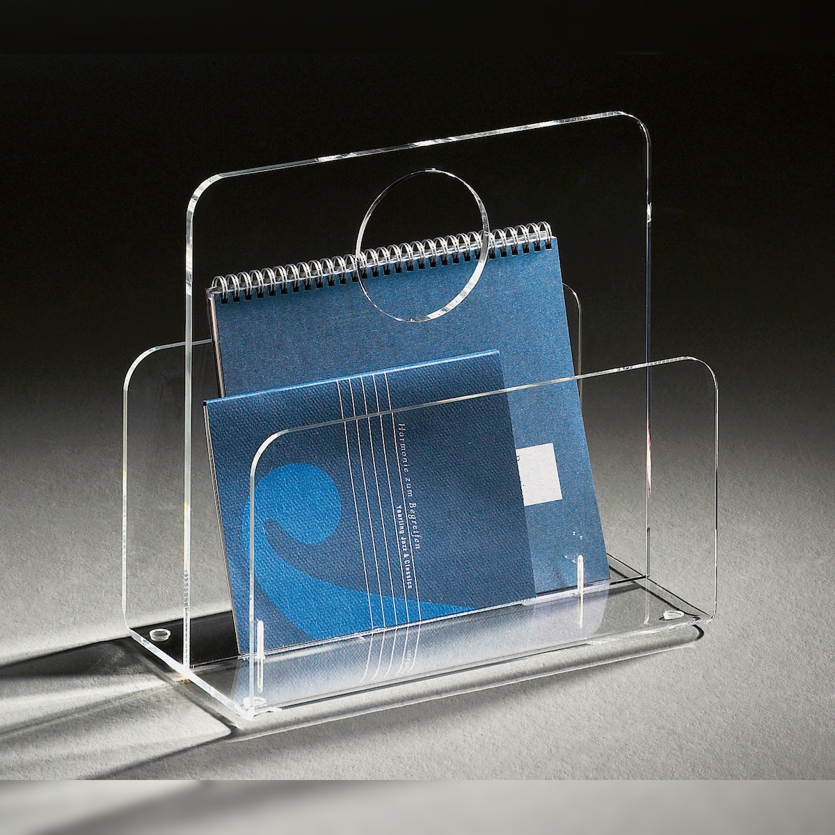 Hochwertige Acryl-Glas Zeitungstasche, Zeitungsständer, klar, 33 x 18 cm, H 31 cm, Acryl-Glas-Stärke 5 / 8 mm