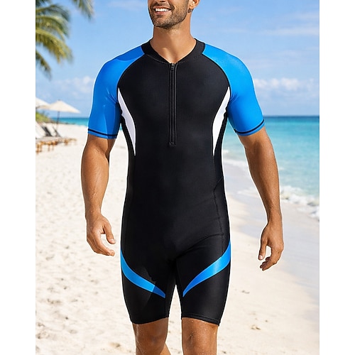Per uomo Top sottomuta Costume da bagno Costumi da bagno Patchwork Gamba lunga fino al ginocchio Protezione UV Asciugatura Rapida Elastico Manica Corta Costume da Bagno Costume da bagno Surf