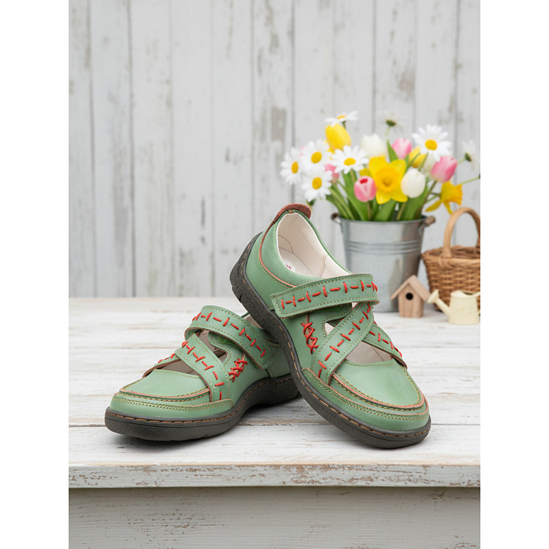 Women's Green Mary Jane Comfort Shoes, Adjustable Strap Design, Wide Fit Leather Flats for Daily Walking, Gardening, Travel and Relaxed Casual Outfits