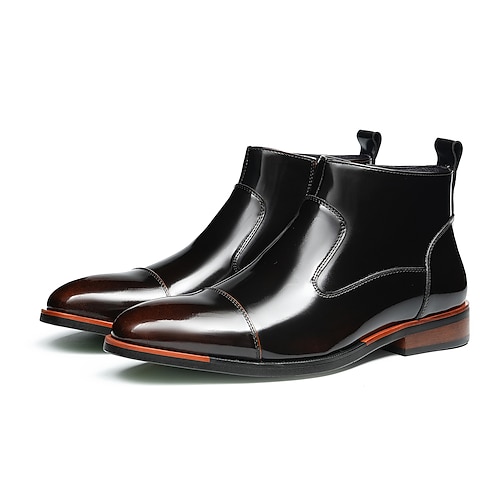 stivali slip-on da uomo in vera pelle nera con finitura lucida, perfetti per matrimoni, feste e contesti professionali