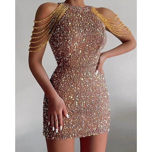 Per donna Mini Abito Abito con Paillettes Vestito da Festa Abito da Cocktail Tubino Moda Moderno Festa serale Feste Occasione speciale Vestibilità regolare Semplice Senza Maniche All'americana Nero