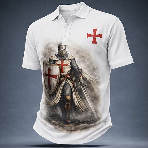 Herren Tempelritter Poloshirts Kurzarm Polo-Shirts Revers Lässig Straße Athleisure Alltagskleidung 3D-Druck Knöpfe Atmungsaktives Gewebe Sommer Frühling Schwarz Weiß Rote