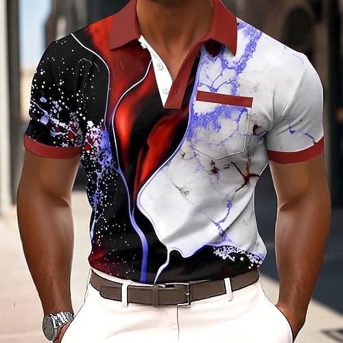 Herren Marmor Poloshirts Kurzarm Polo-Shirts Hemden mit Kragen Business-Casual Outdoor Athleisure Alltagskleidung 3D-Druck Knöpfe Sommer Frühling Blau Rosa Rote