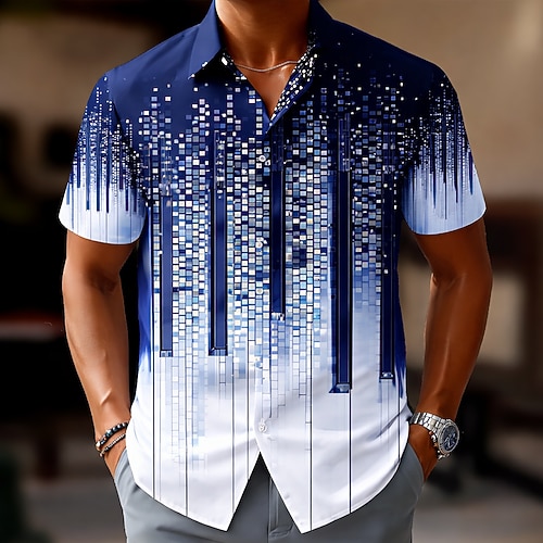 Herren Geometrisch Polo Kurzarm Polo-Shirts Hemden mit Kragen Lässig Outdoor Athleisure Alltagskleidung Tasche 3D-Druck Knöpfe Sommer Blau Rote Orange