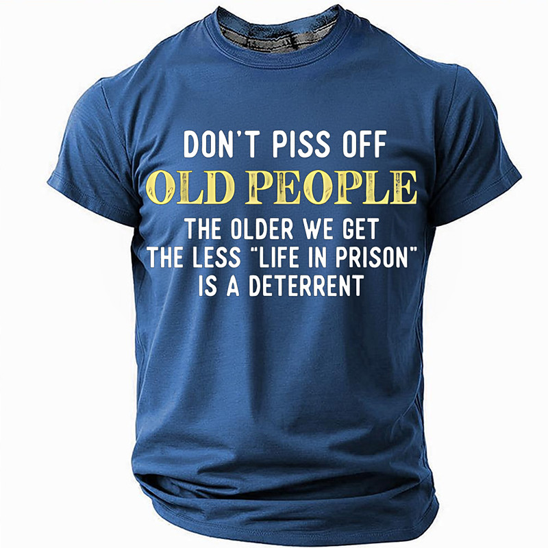 Mens Funny T-Shirt: 'Don't Piss Off Old People, Life In Prison Is Less A Deterrent' Sarcastic Short Sleeve Graphic Tee