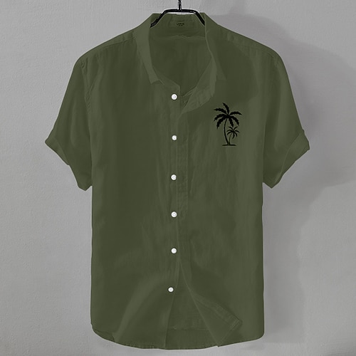 Per uomo Camicia di lino Camicia minimalista Aloha Camicia casual Camicia in cotone e lino Camicia con Bottoni Albero di Cocco Vacanza Streetwear Nero Bianco Rosa Blu marino scuro Manica Corta Bavero